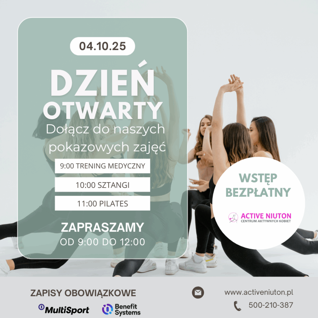 Dzień otwartyUncategorized / Przez Karolina Cichocka Zapraszamy na dzień otwarty naszego Centrum. W dniu wydarzenia będzie można skorzystać, z bezpłatnych zajęc fitness:9:00 trening medyczny10:00 sztangi11:00 pilatesNa ćwiczenia obowiązują zapisy telefoniczne:500-210-387